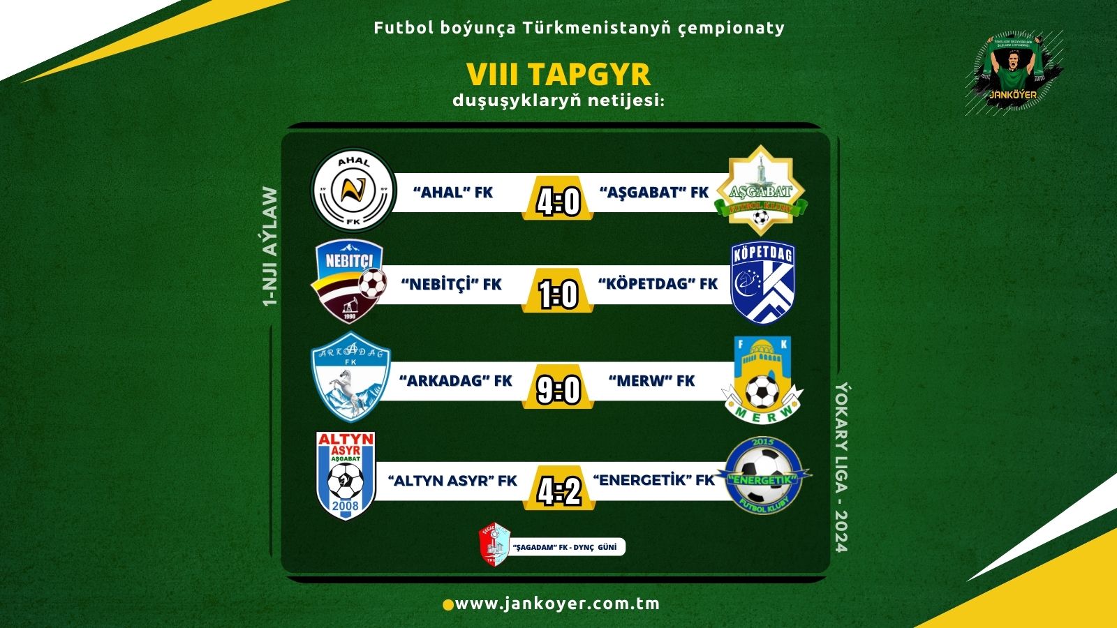 Şu gün, 17-nji aprelde ýurdumyzyň futbol çempionatynyň 8-nji tapgyrynyň duşuşyklary geçirildi.