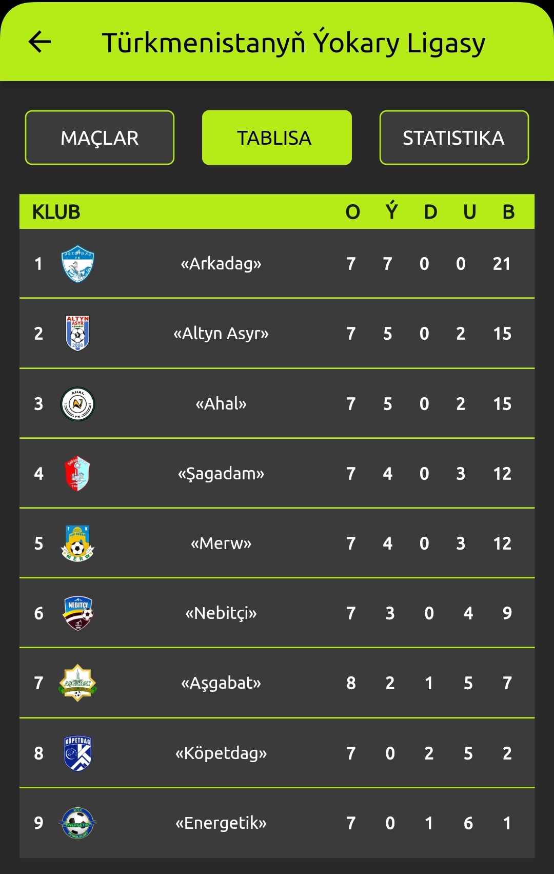 Şeýlelikde geçirilen duşuşyklardan soň 21 utuk toplan “Arkadag” (7 oýundan) topary ýaryş tertibinde birinji basgançagy eýelemegini dowam edýär. Ikinji, üçünji orunlarda 15 utuk toplan "Altyn Asyr" (7 oýundan) hem-de “Ahal” (7 oýundan) toparlary ornaşdylar.