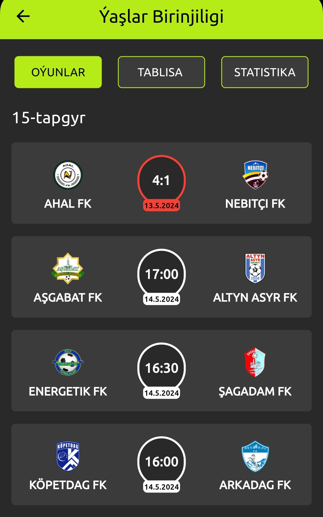TÝB. 15-nji tapgyr: “Ahal II” – “Nebitçi II” – 4:1