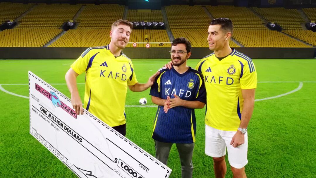 MrBeast Kriştianu Ronaldu bilen million dollara futbol çekeleşigini geçirdi.