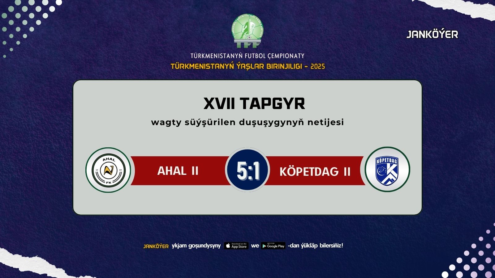 TÝB - 2025. «Ahal II» 5:1 hasabynda ýeňiş gazandy