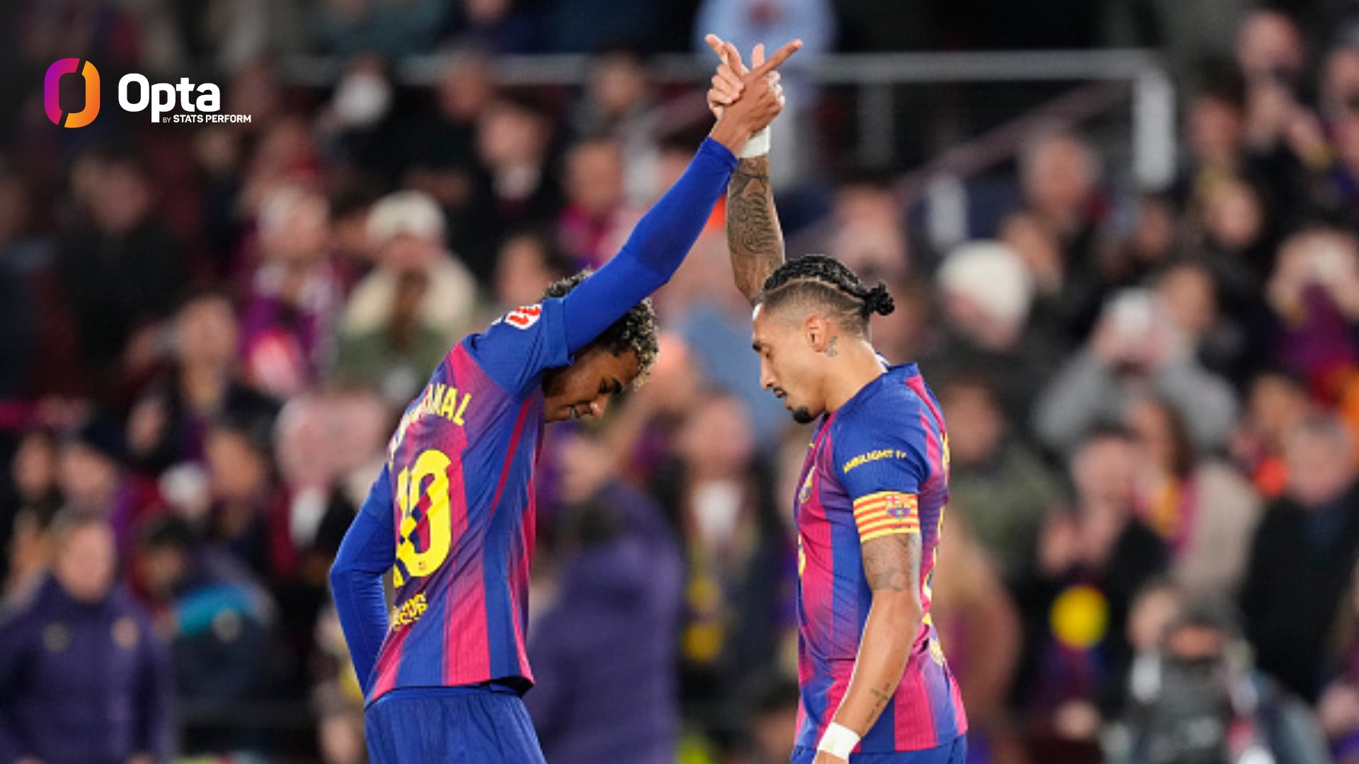 • "Optanyň" maglumatlaryna görä, bu Rafinýanyň 2022/23-nji möwsüminden bäri «Barselonanyň» düzüminde ähli ýaryşlarda jerime meýdançasynyň daşyndan uran 10-njy goly boldy. Bu döwürde «Barselonanyň» beýleki oýunçylaryndan hiç biri köp gol geçirmediler – diňe Lamin Ýamal şol bir görkezijä eýedir.