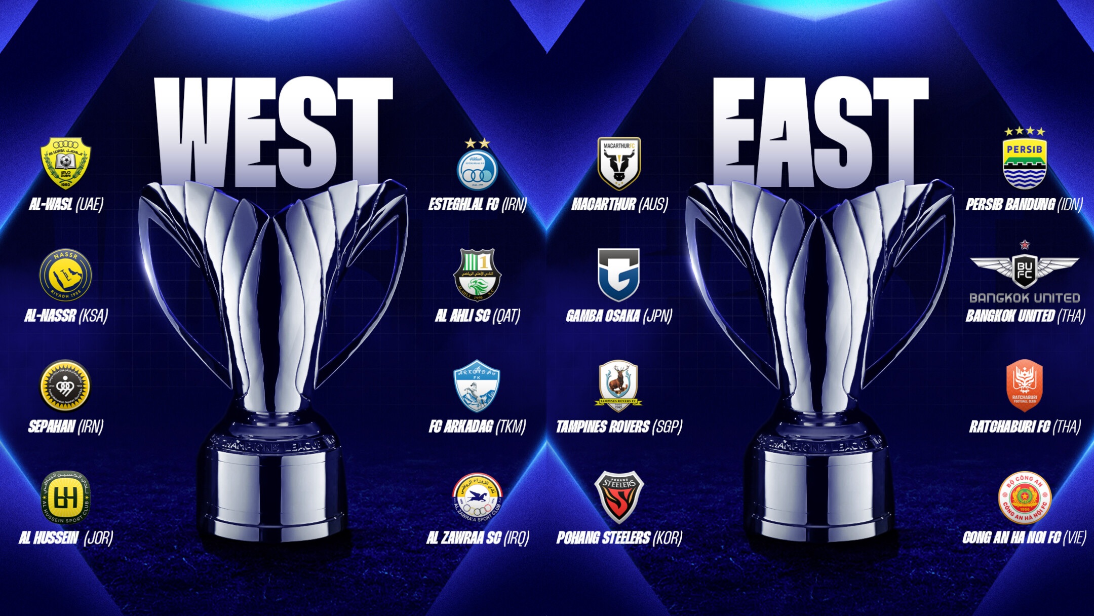 "E" toparçada Awstraliýanyň «Makartur» (13 utuk) we Wýetnamyň «Kongan», "F" toparçada Ýaponiýanyň «Gamba Osaka» bilen Taýlandyň «Ratçaburi», "G" toparçada Indoneziýanyň «Persib Bandung» (13 utuk) we Taýlandyň «Bangkok Ýunaýted», "H" toparçada bolsa Singapuryň «Tampaýnes» (16 utuk) hem-de Günorta Koreýanyň «Phohan Stilers» toparlary 1/16 finala çykdy.