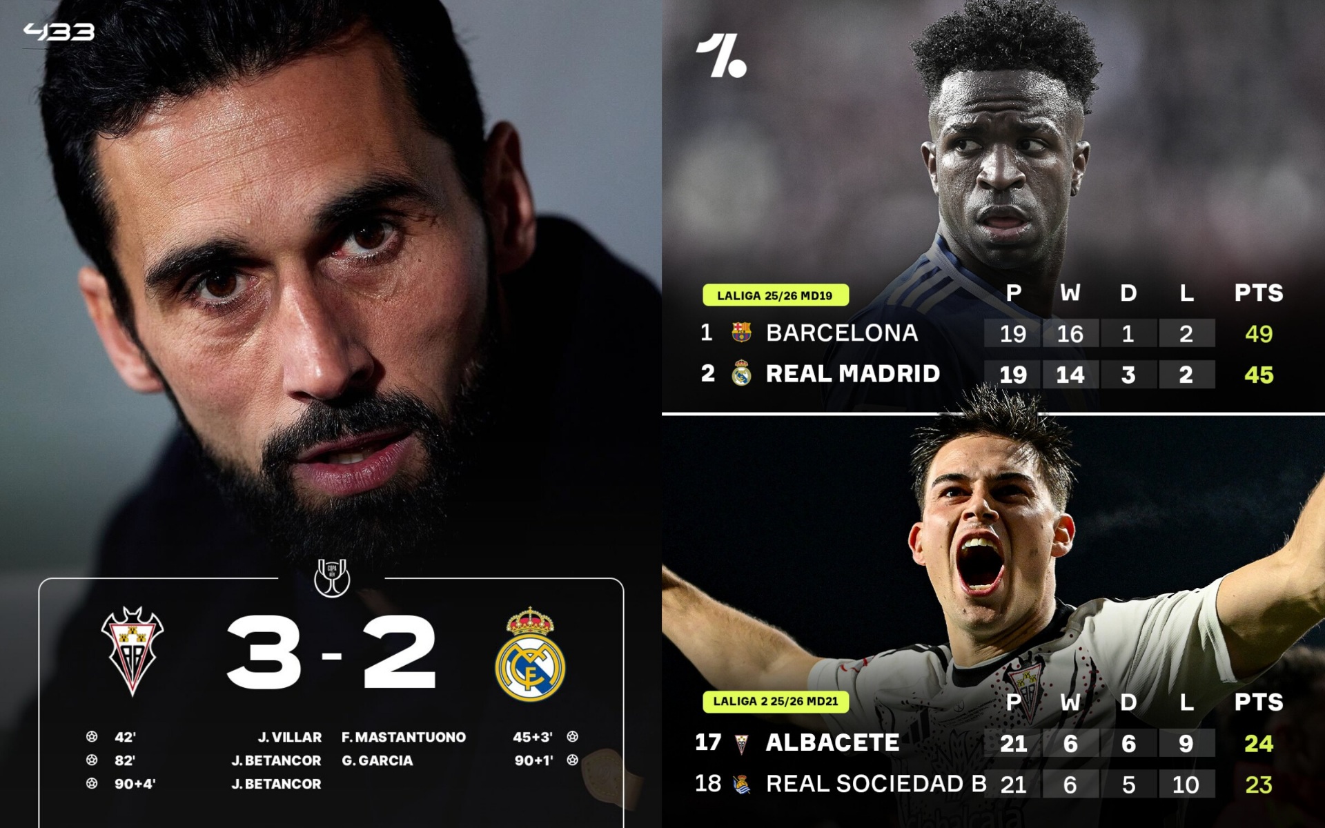 Şeýlelikde, «Real» Kubokdan ir çykyp, soňky günlerde baş tälimçi çalşygyndan soň ýene bir agyr urgy aldy. «Albasete» bolsa Ispaniýanyň Kubogynda iň ýatda galyjy ýeňişleriniň birini gazandy.