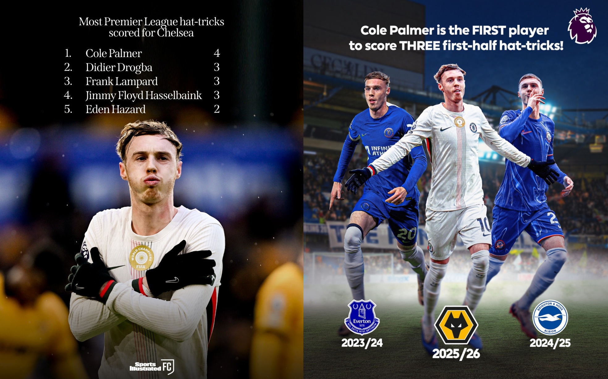Bu het-trik birnäçe rekord bilen ýatda galdy. Palmer «Çelsiniň» taryhynda Premýer-ligada dört het-trik eden ilkinji futbolçy boldy we Didýe Drogba, Frenk Lempard hem-de Jimmi Hasselbank ýaly hüjümçileri yzda galdyrdy. Şeýle-de ol Angliýanyň Premýer-ligasynyň taryhynda üç gezek ilkinji ýarymda het-trik eden ilkinji oýunçy hökmünde hasaba alyndy. Mundan başga-da, het-trikleriň sany boýunça Mohammed Salah bilen deňleşdi we Lempard, Drogba, Lukaku, Kriştianu Ronaldu, Teo Wolkott, Ole-Gunnar Sulşer hem-de Nikolýa Anelkadan öňe geçdi.