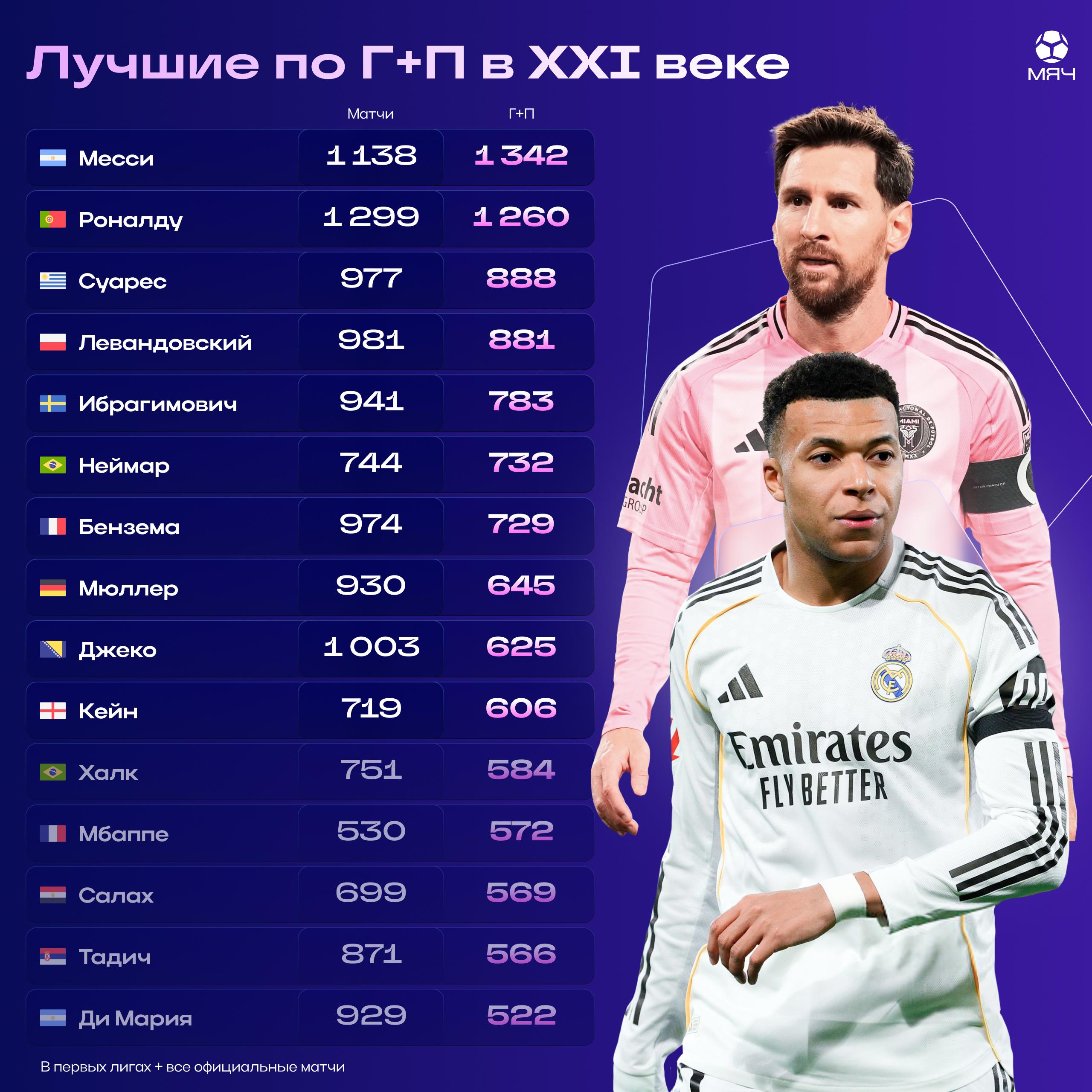 XXI asyrda iň köp gol we asist (G+A) görkezijisi boýunça öňdebaryjy futbolçylaryň sanawyna täze atlar ýakynlaşýar. Häzirki wagtda Kilian Mbappe we Mohammed Salah iň gowy onlugyň içinde ýerleşýän Harri Keýni kowalaýar.