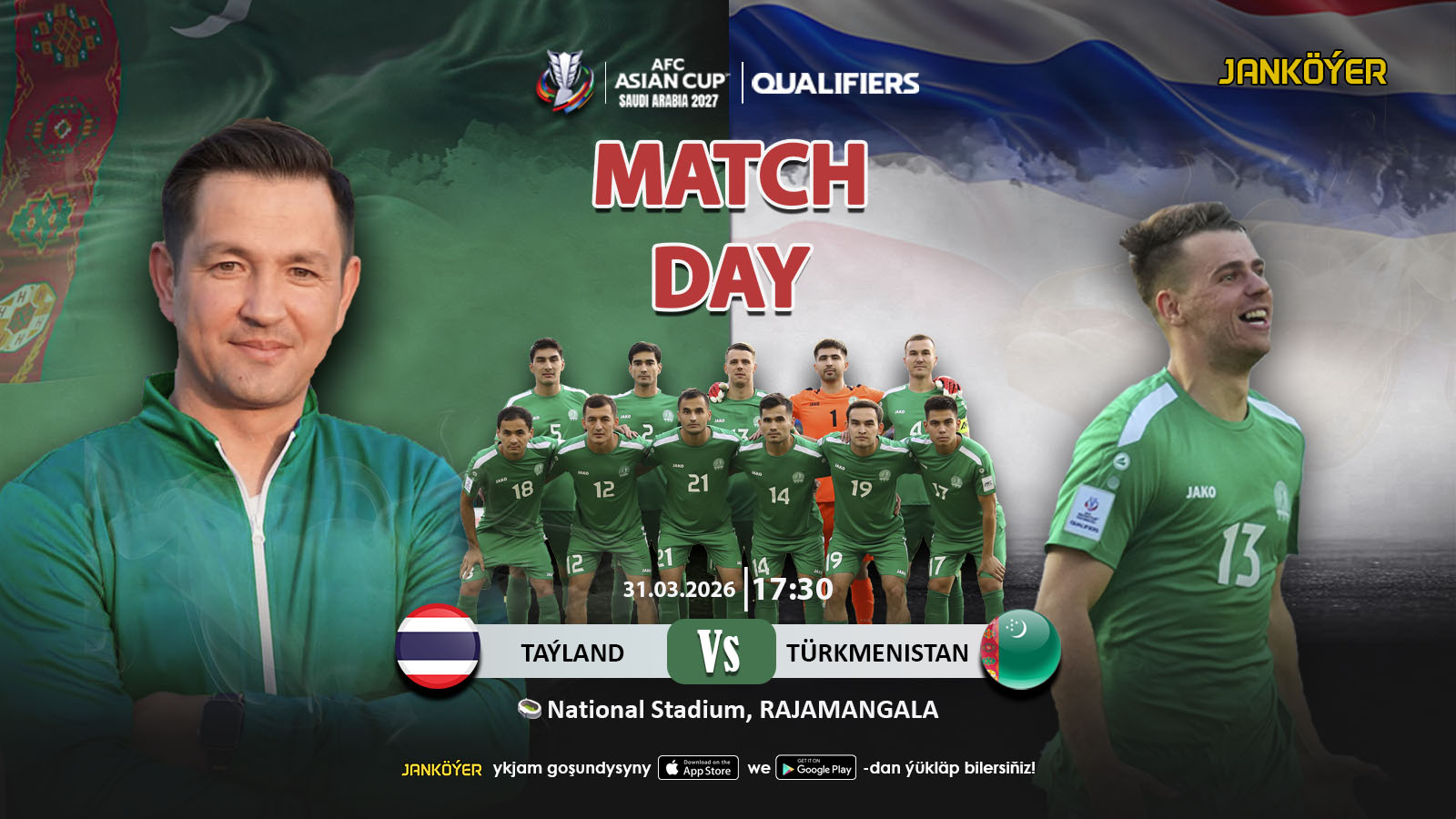 Türkmenistanyň milli ýygyndysy şu gün Aziýa kubogy–2027-niň saýlama tapgyrynyň çäginde Taýlandyň milli ýygyndysy bilen duşuşyk geçirer. Oýun Bangkok şäherindäki "Rajamangala" stadionynda Aşgabat wagty bilen sagat 17:30-da başlanar.
