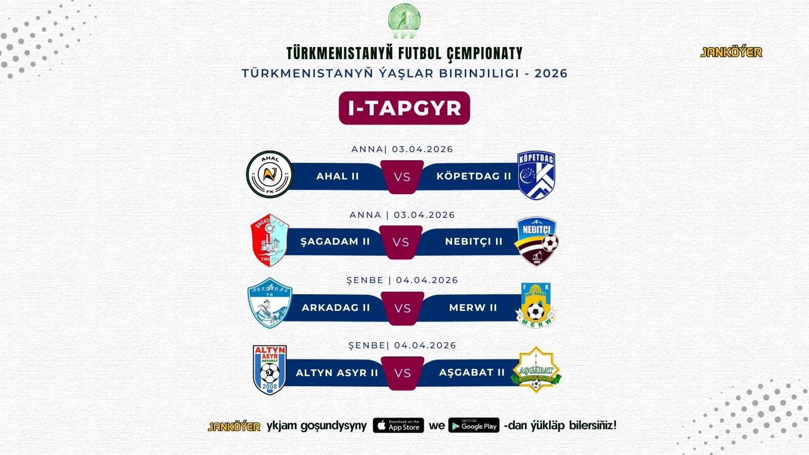 Şu gün, 3-nji aprelde Türkmenistanyň ýaşlar birinjiliginiň 2026-njy ýylyň möwsümine resmi taýdan badalga berilýär. Täze möwsümiň ilkinji tapgyry birnäçe gyzykly duşuşyklar bilen başlaýar.