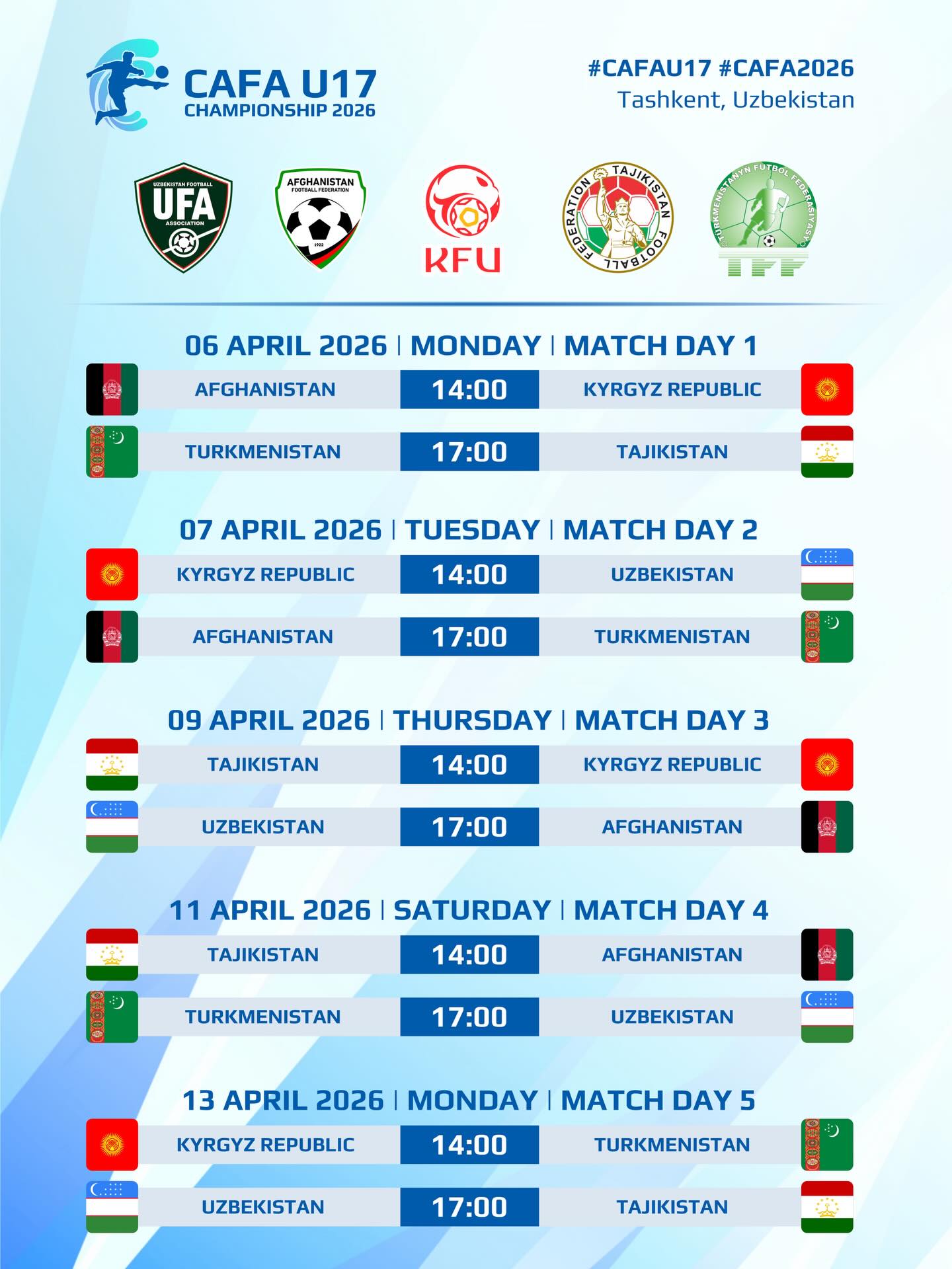 Türkmenistanyň U17 ýygyndysynyň "CAFA"–2026-daky duşuşyklarynyň tertibi: