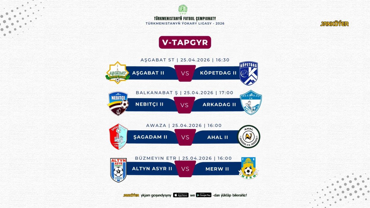 Tapgyryň iň gyzykly duşuşyklarynyň biri Balkanabat şäherindäki "Sport toplumy" stadionynda geçiriler. Bu ýerde «Nebitçi II» topary öz meýdançasynda ýaryşyň lideri «Arkadag II» topary bilen duşuşar. Oýun sagat 17:00-da başlanar.