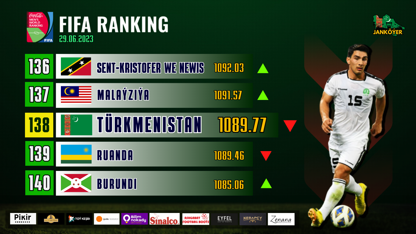 Türkmenistan FIFA-nyň reýtingindäki ýerini täzeledi