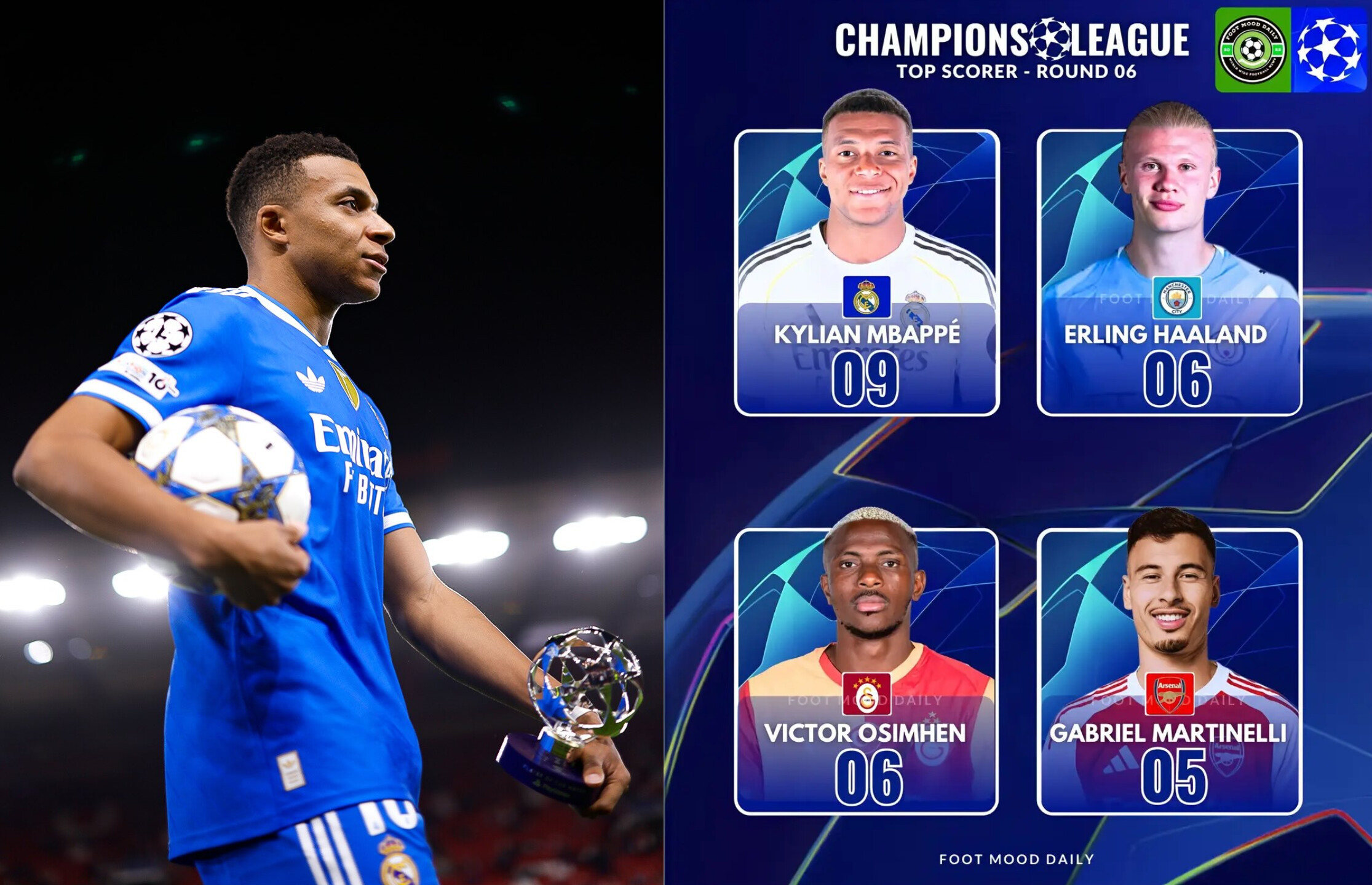 Fransiýaly oýunçynyň iň ýakyn yzarlýjylary «Mançester Sitiň» hüjümçisi Erling Holand we «Galatasaraýyň» hüjümçisi Wiktor Osimhen boldy – olaryň ikisi hem alty gezek tapawutlandy.